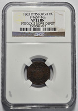 1863 PITTSBURGH PA, PITTOCK'S NEWS DEPOT CIVIL WAR TOKEN F-765P-16a NGC VF 35 BN