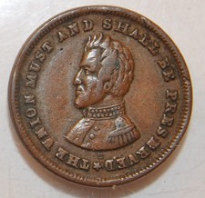 1863 CIVIL WAR TOKEN,CWT, THE UNION MUST & SHALL BE PRESERVED JACKSON,Clip Error