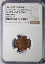 Top Pop 1863 F-107/107 a Full Brockage Civil War Token NGC MS-62 BN