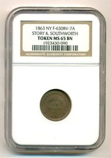 Civil War Token 1863 New York Story & Southworth F-630BV-7a R3 MS65 BN NGC