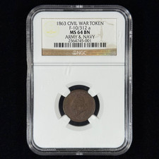 1863 CWT MS64 BN NGC F-10/312a Copper Civil War Token - Army & Navy