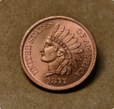 1877 Indian Head Cent Penny, Gorgeous RED, Superb