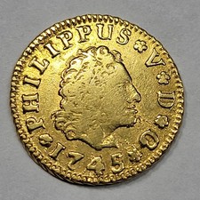 1745 Spanish Colonial 1/2 Escudo Gold Doubloon Philip V Genuine Spain *M682