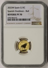 2023 M Spain Spanish Doubloon - Bull Gold 15 Euro Cent Reverse PF 70 NGC 1/10 oz