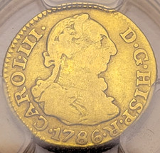 PCGS: OLD US $1 GOLD COIN - 1786 SPANISH COLONIAL HALF ESCUDO DOUBLOON 22K PURE