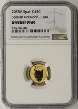 2022M Spain Spanish Doubloon Lynx GOLD 15 Euro Reverse PF 70 TOP POP NGC 1/10 oz