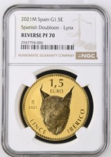 2021-M NGC Spain 1.5 Gold coin Spanish Doubloon Lynx Reverse Proof PF70 TOP POP