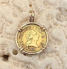 Gold Coin 22K Spanish Treasure Authentic Pirate Doubloon 1/2E set 14K Pendant