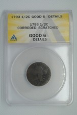 1793 Liberty Cap Half Cent ANACS Good 6 Details (Corroded, Scratched)