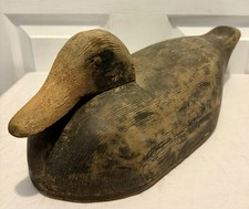 Antique Hand Carved Hand Painted Wood Duck Decoy 11” x 5” x 6” Folk Art