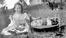 ANTIQUE GLASS PHOTO NEGATIVE - WOMAN WITH A NEW PUPPY AND KITTEN
