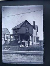 Antique Glass Photo Negative 5x7”Black White Family Home #13