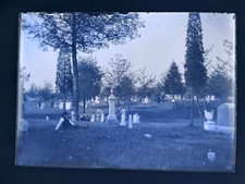 antique circa 1900 Glass Dry Plate Cemetary Graveyard Scene