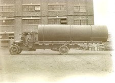 VINTAGE GLASS NEGATIVE ANTIQUE TRUCK TRANSPORTING A LARGE PIPE STATEN ISLAND NY
