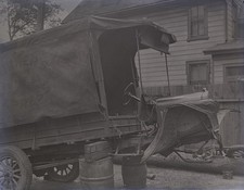 VINTAGE GLASS NEGATIVE ANTIQUE SMALL TRUCK, FRONT AXLE REMOVED WRECK, S.I. N.Y.