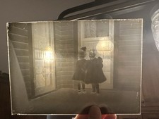 Antique Glass Photo Negative 5x7”Black White Family Home #4 Sisters Little Girls