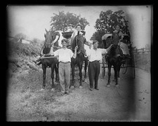 Antique Glass Plate 4x5 Negatives of 2 Groups With Horse Drawn Carriages