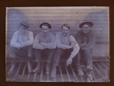 Vintage GLASS NEGATIVE Slide Photo MEN WORKERS Denim Overalls Suspenders antique