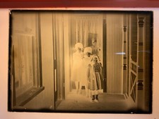 Antique Glass Photo Negative 5x7”Black White Family Home #14