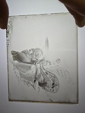 Antique Glass negative of a baby in a sleigh for Christmas