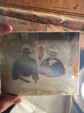Antique Glass Photo Negative 5x7”Black White Family Home #2 Family Reunion