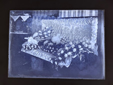Vintage GLASS NEGATIVE Slide Photo POSTMORTEM Man Casket Flowers antique