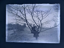 Vintage GLASS NEGATIVE Slide Photo Mother Daughter SITTING TREE Branches antique