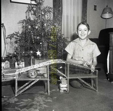 Kid with Christmas Toys - Erector Set Bridge - c1940s - Vintage B&W Negative