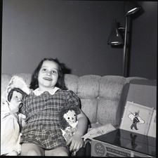Kid Girl With Dolls Raggedy Ann Marx Toys Box Vintage 1950s Photo Negative