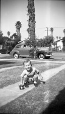Vintage Negative B&W Med Format Little Boy Playing toys Outside #218B