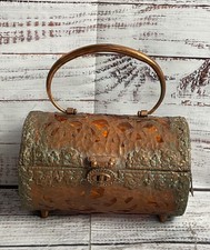 Walborg Vintage Mid Century MCM Lucite Copper Top Handle Bag Amber