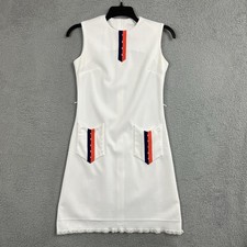 vintage 60s 70s Glen Echo White & Red Space Age Mod Cap Sleeve Sweater SZ 8