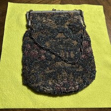 Antique Victorian Handmade Glass Beaded Ladies Purse Eve.Bag Crochet