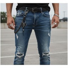 Men Antique Silver Metal Wallet Chain Key Horn Spike Leather Rider Trucker Jeans