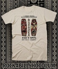Retro Tiki Art Tee T Shirt Cotton Bar Mug Restaurant Bahooka Ribs and Grog CA