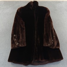 Vintage Teddy Bear Coat Womens Large Brown Button 70s Faux Fur Heavy Outdoor