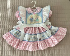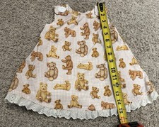 Vintage Miss Ermine Girls Dress Apples teddy Bears Pinafore size 2T cottage