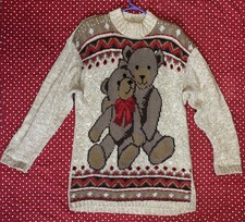 Vintage Teddy Bears Knit Scallop Neck Oversized Sweater