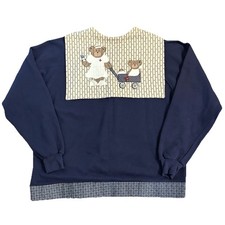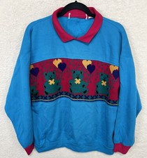 Vintage Teddy Bears Sweatshirt Womens Large Blue 90s Grandma Cute Hearts