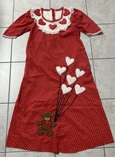Vintage Handmade Maxi Dress Gown Red Hearts Teddy Bears Balloons Embroidered S/M