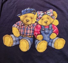 Vintage 90s Teddy Bears T Shirt Size Large Single Stitch USA Made FotL Tag Blue