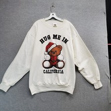 VINTAGE Teddy Bear Men Sweatshirt XL White Hug Me In California 90s Pullover