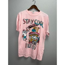 Vintage Teddy Bear Shirt Stay Cool Buddy Sombrero Graphic Pink Tee 90s VTG Large