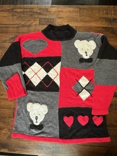 Vintage Maggie Lawrence Womens Sweater Red Teddy Bears Valentine Size Med