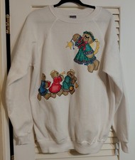 Vintage 1980s Hanes XXL Christmas Teddy Bears Iron-On Transfers White Sweatshirt