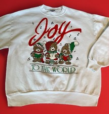 Vintage 90s Holiday Sweatshirt Women's Size L Colorful Teddy Bears JOY Retro
