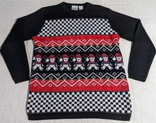 Holiday Teddy Bears Sweater Womens Size Medium Vintage Santa Bears Black Red