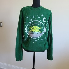 Men's Star Wars Baby Yoda Green Long Sleeve Sweater Size Large