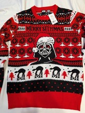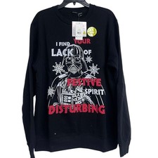 NWT Star Wars Darth Vader Black Christmas Sweater with Festive Print Large Mens