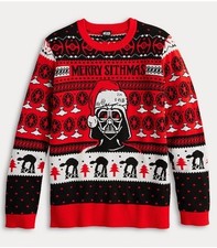 Men's Small Star Wars Merry Sithmas Graphic Intarsia Sweater Red Darth Vader NWT